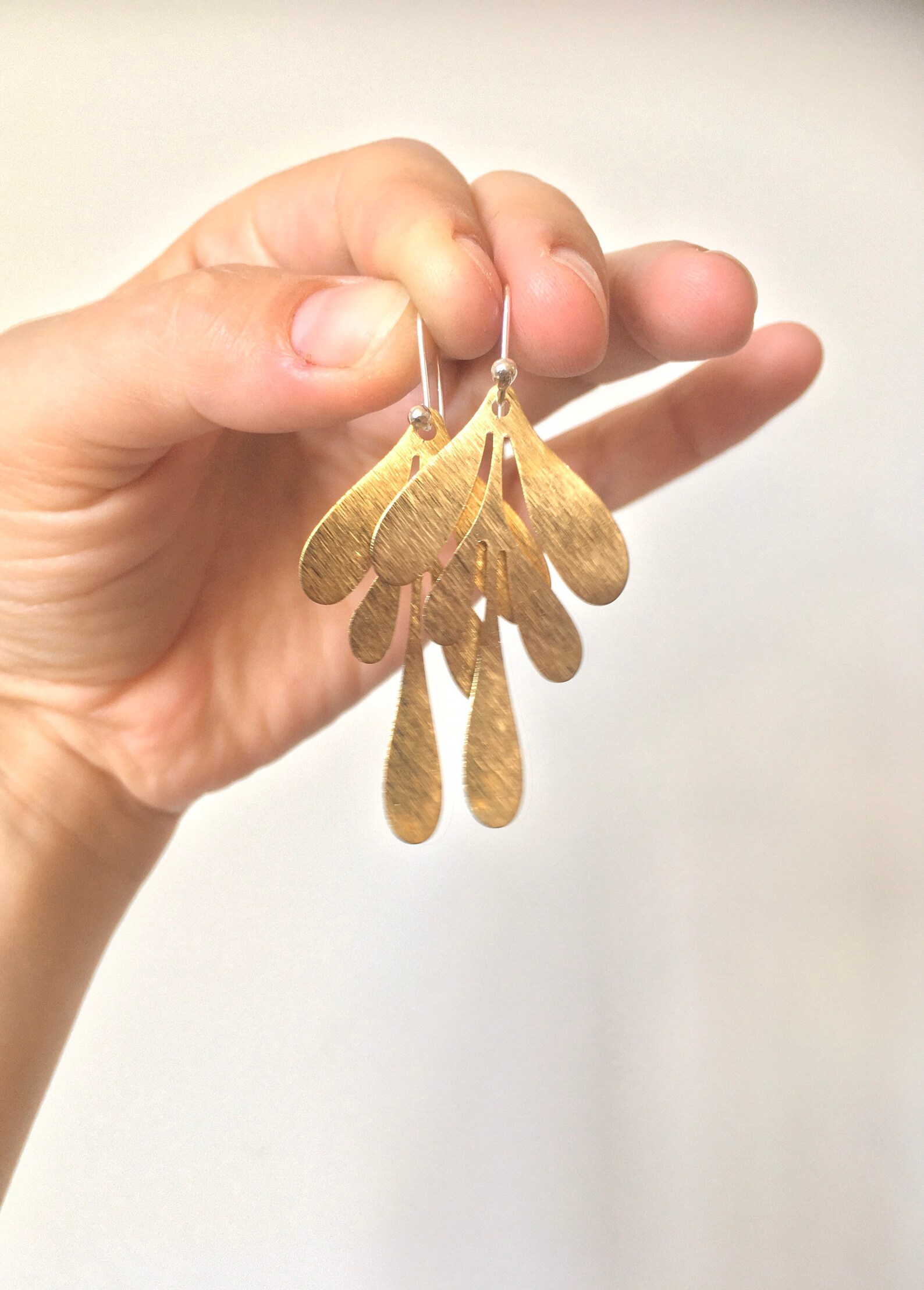Add a touch of golden charm to your style with our handcrafted brass dangle earrings, designed to flow beautifully with every movement. Featuring multiple delicately textured teardrop-shaped brass pieces, these earrings create a stunning cascading effect that embodies elegance and grace.