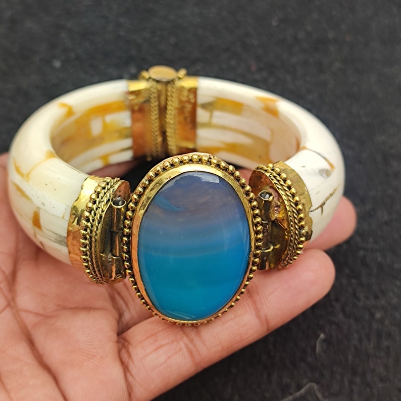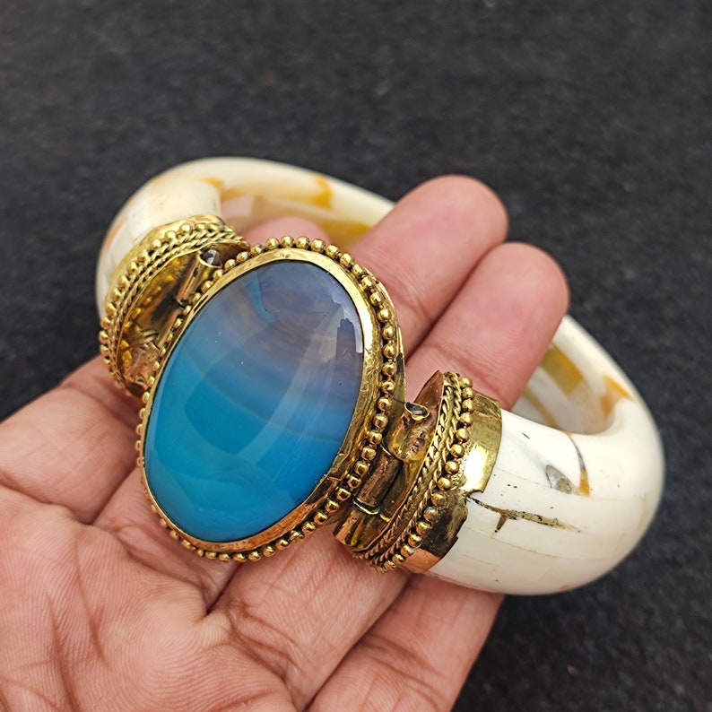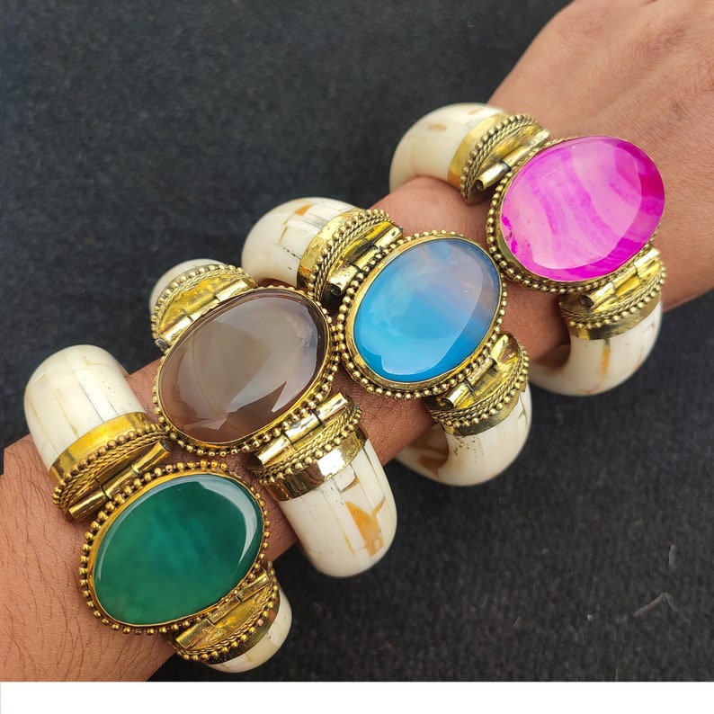 Embrace the beauty of handcrafted tradition with this stunning bone cuff bracelet, featuring a vibrant pink agate stone set in antique-finish brass. Designed with an ethnic and bohemian touch, this bracelet is a true work of art, perfect for those who love unique, bold accessories.