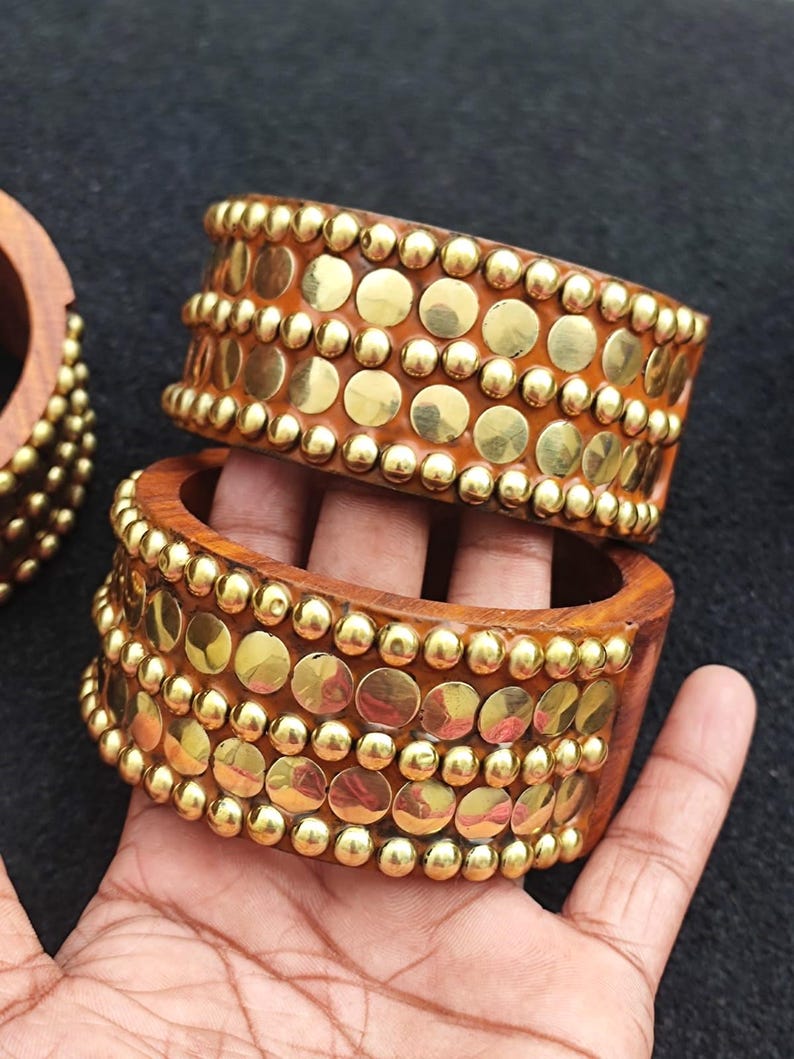 Handcrafted Tribal Metal Studded Wooden Bangle