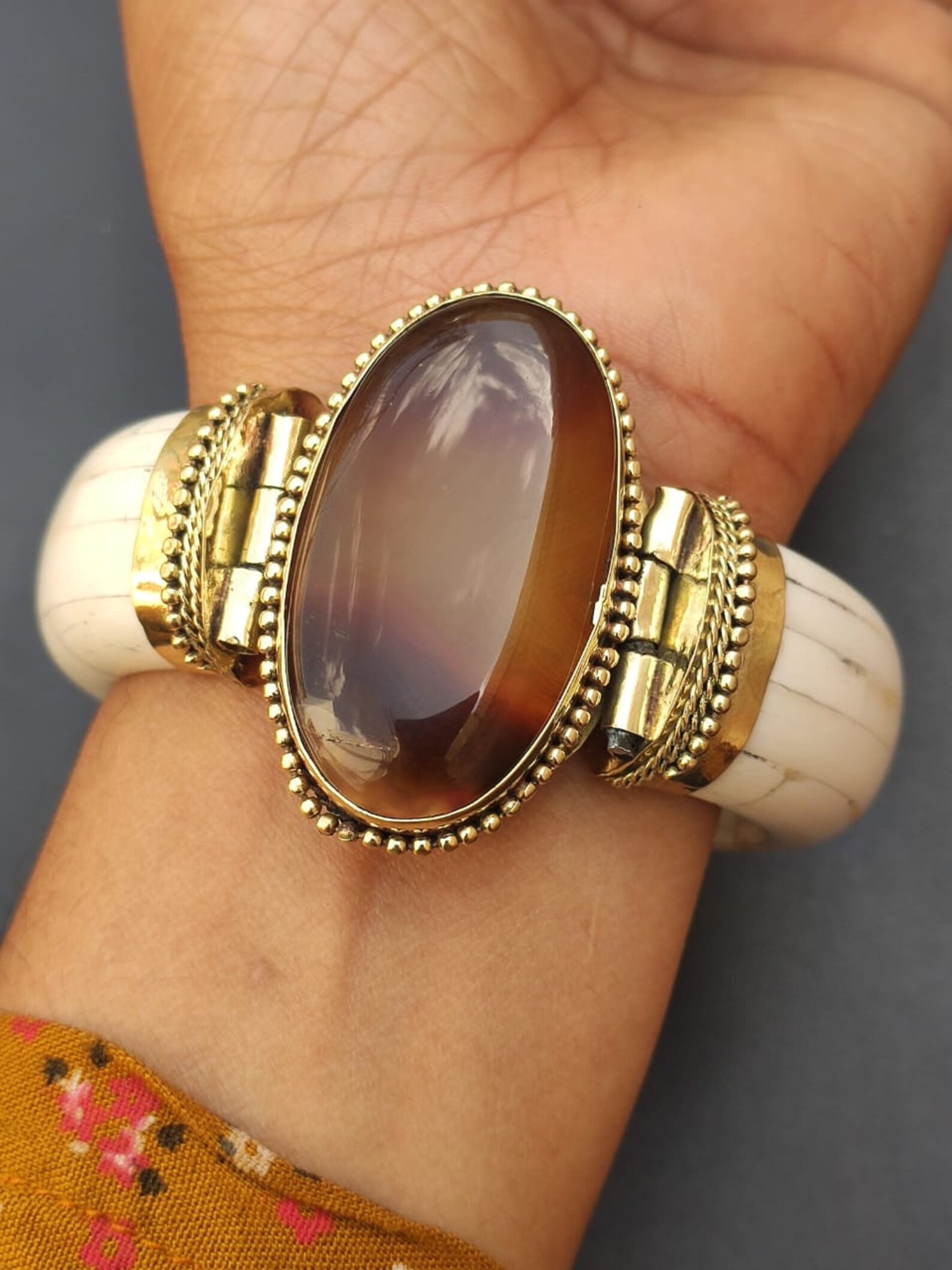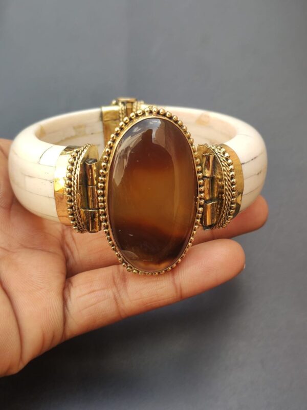 Embrace the charm of handcrafted elegance with our Stone Design Bone Bangle, a stunning fusion of tradition and artistry. Skillfully crafted using bone, brass, and resin stone, this bangle is a timeless statement piece that exudes royalty and sophistication. Each bangle is carefully designed to showcase intricate detailing, making it a must-have for those who love unique and bold accessories.