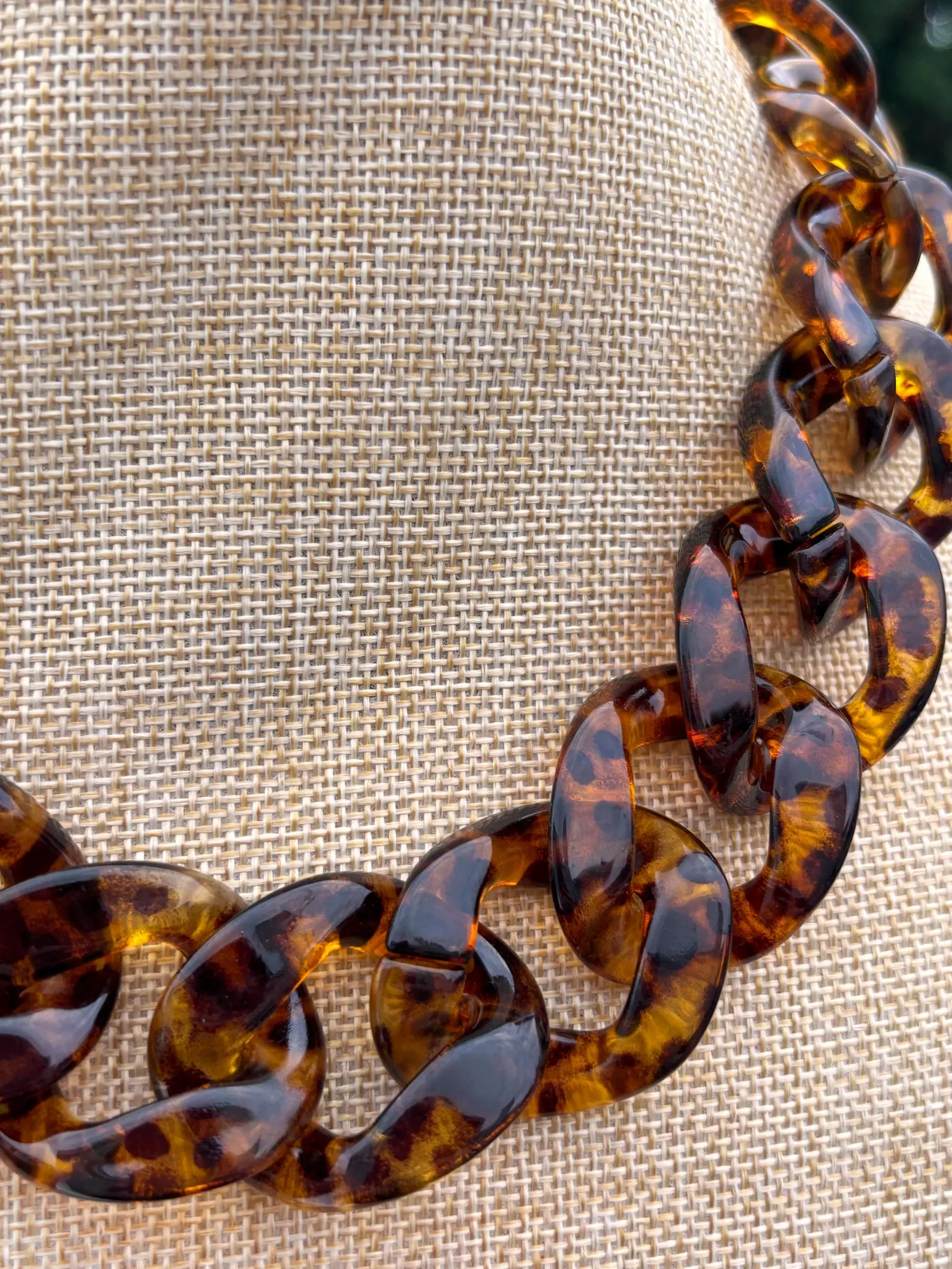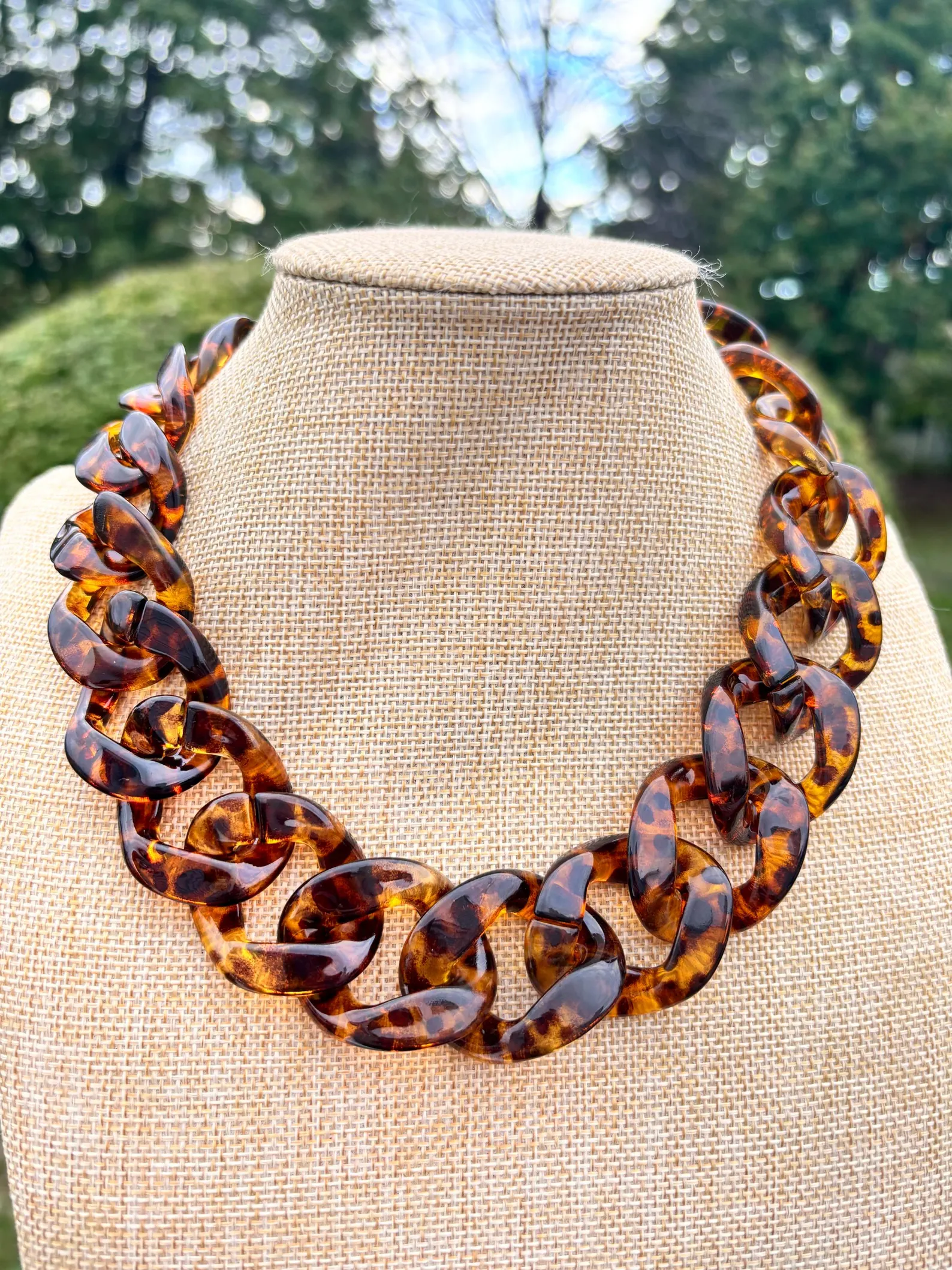 Make a statement with this handcrafted chunky chain necklace, made from high-quality resin in a stunning tortoiseshell pattern. Its oversized links create a bold, elegant look that complements both casual and formal outfits.